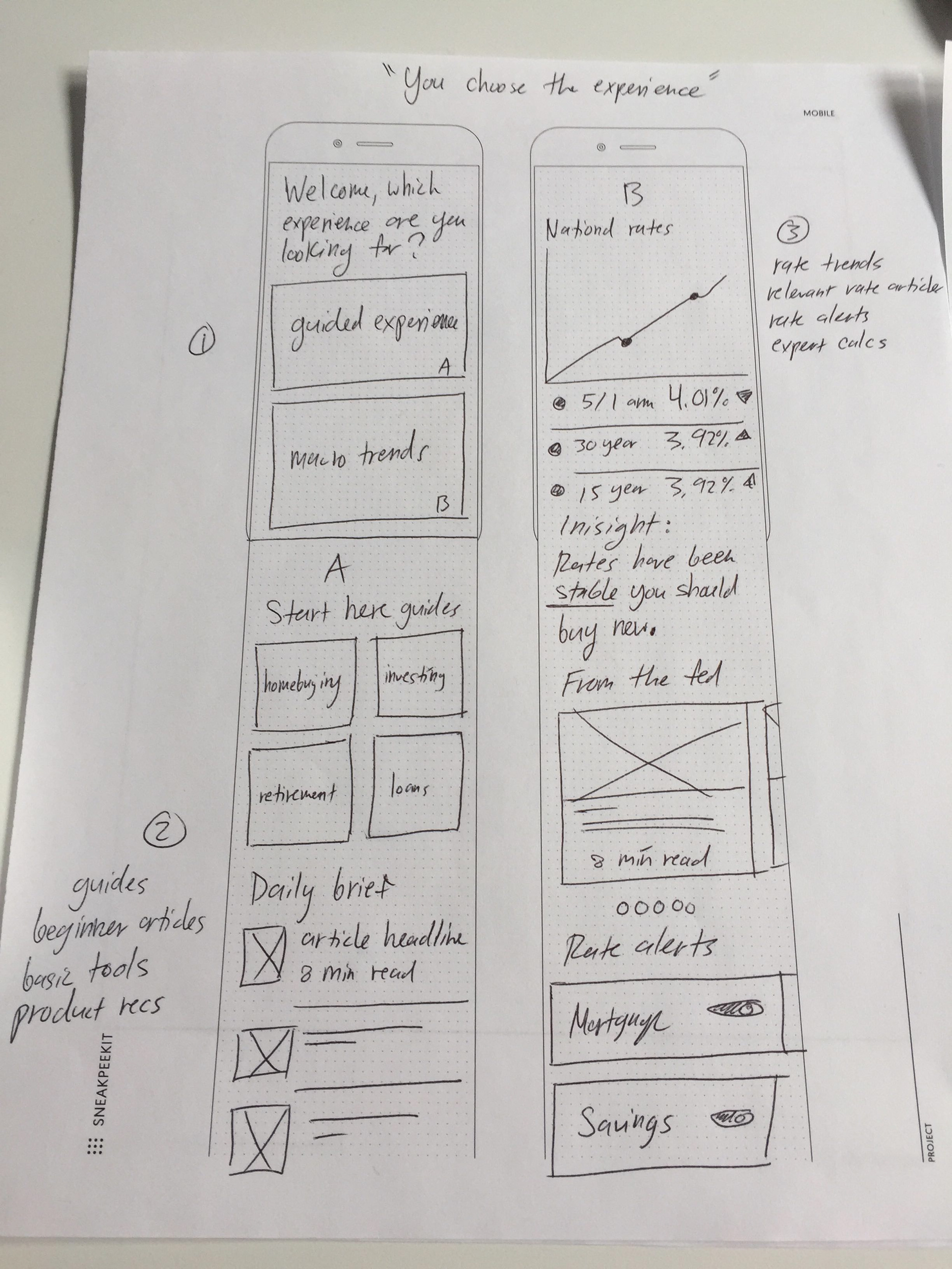 With account creations rolling in we knew we had to keep iterating on the experience and thinking about what would come next. Because our brand vision was "Guiding you through life’s financial journey" we knew the next step had to get closer to providing guidance based on our users unique financial situations. So we started designing a personal finance feature set as the next phase for our Auth experience.